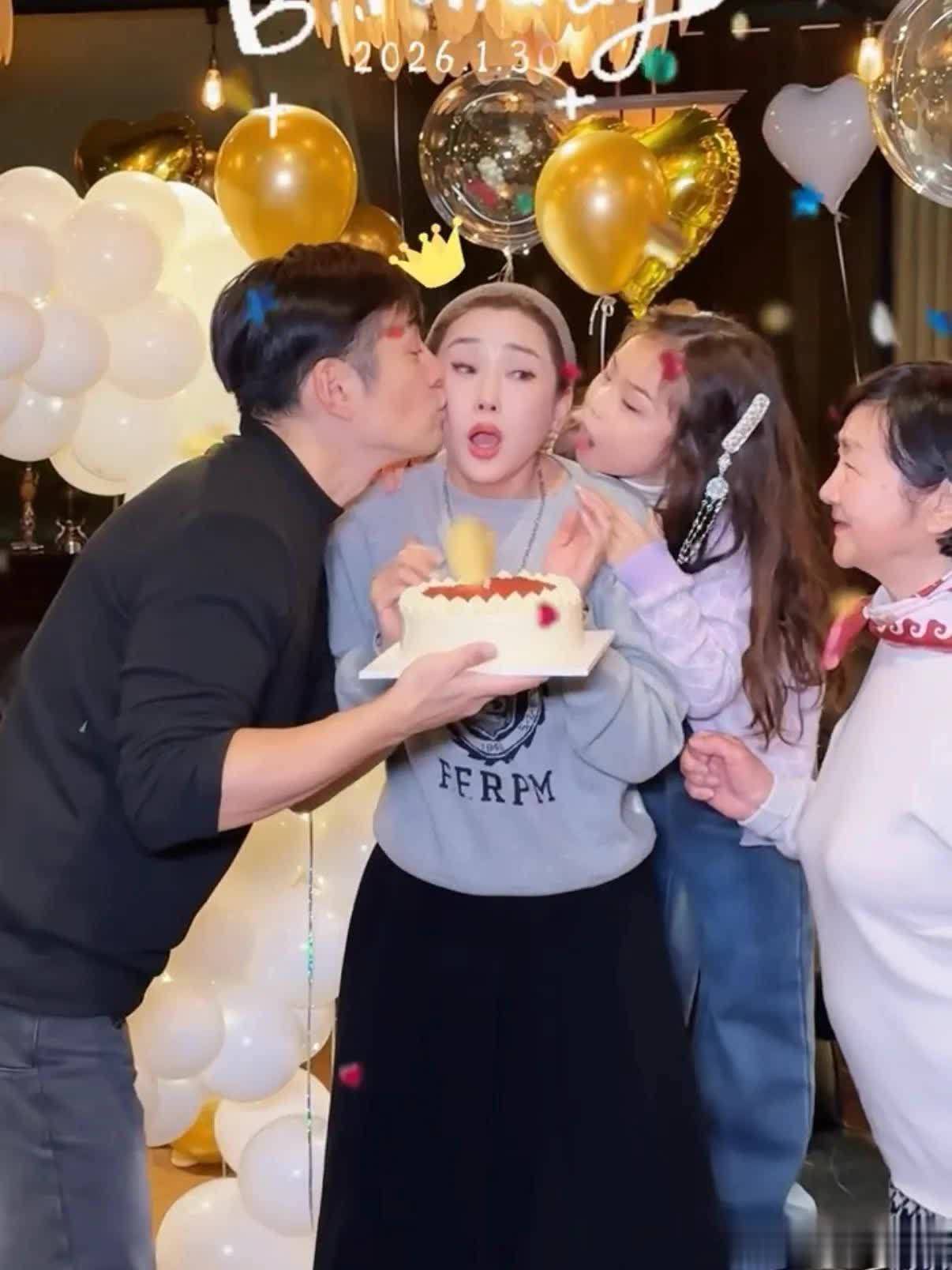2月1日,杜若溪在社交平台晒出庆祝41岁生日的画面,老公严屹宽和女儿为其送上惊喜,并获婆婆主动亲吻脸颊,一家人好温馨有爱。